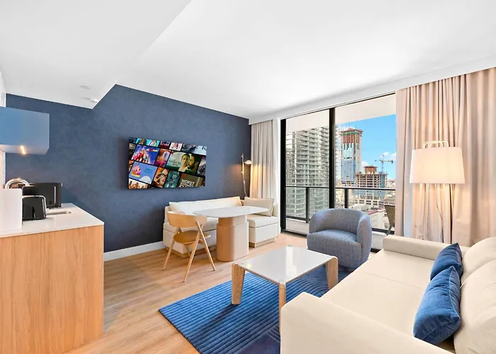 Gale Hotel Modern Condo Near The Bay Miami villa is located approximately 5 minutes' walk from the Museum of Art and Design at Miami Dade College and offers guests to relish a sunbathing terrace as well as a swimming pool. This Miami holiday home is situated in proximity to the americanairlines American Airlines Arena and provides a sauna, ensuring a relaxing stay.